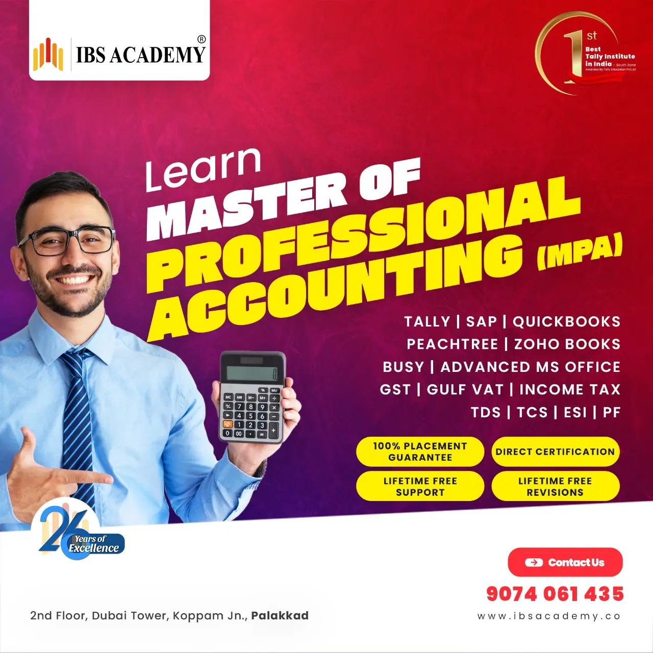 IBS Academy was founded with the vision of bridging the gap between academic knowledge and industry requirements. With its roots in International Business Solutions, a trusted ERP solutions provider, IBS Academy specializes in developing skilled professionals in accounts, inventory, and taxation. As an authorized training partner of NSDC, Skill India, SAP, and Tally Solutions, we offer internationally recognized certifications along with hands-on training. Backed by experienced faculty and SAP-certified trainers, IBS Academy ensures quality education, practical exposure, and 100% placement assurance, making us one of South India's most trusted institutions for commerce and management education.